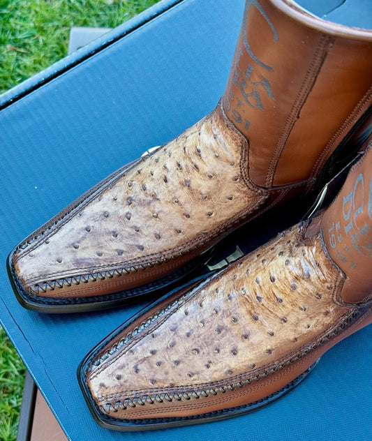 Men's Cowboy Boot In Genuine Ostrich Leather And Bovine Leather(Buy 2 Free Shipping✔️)