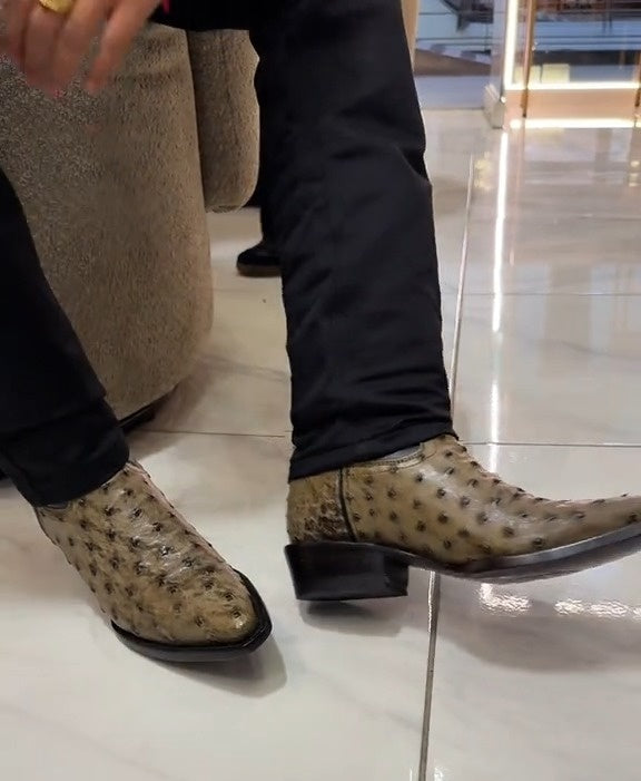 Bronco Boots Men's Brown Ostrich Square Toe Boots