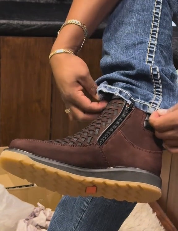 Perfect for hiking, daily commutes, or casual outings, these cowboy-inspired boots pair effortlessly with jeans, chinos, or casual suits, Upgrade your footwear collection with the Urban Trekker Woven Leather Boots and step out in confidence and cowboy style.