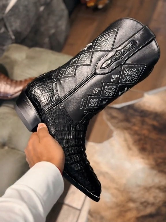 MEN'S COWBOY ALLIGATOR NECK PRINT WESTERN SQUARE TOE BOOT