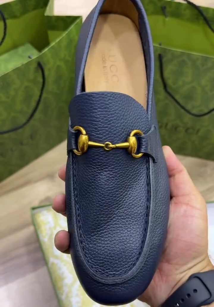 Loafers in calfskin leather with gold metal T bar accessory and rubber outsole with anti slippery outsole. A versatile style, with timeless elegance.