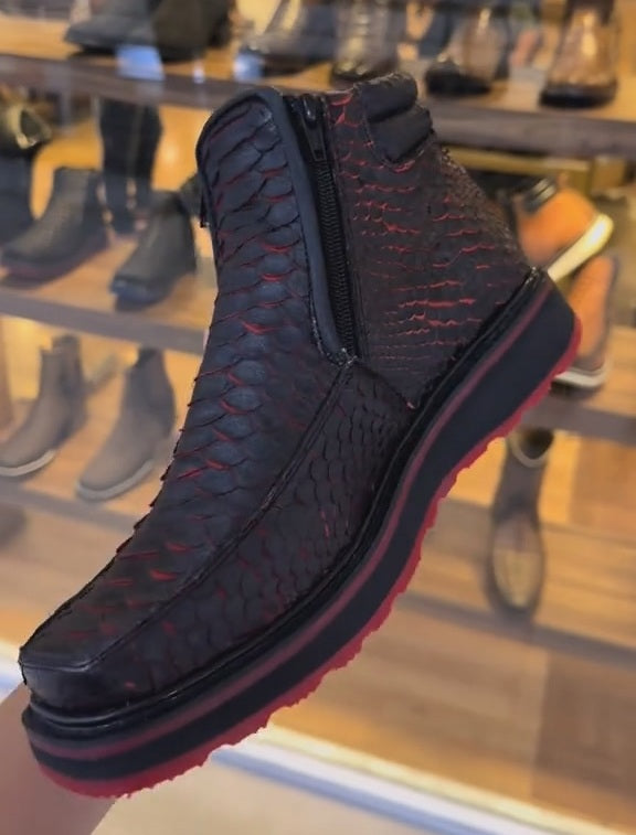 Vintage Cherry Python Cowboy Ankle Boots(Buy 2 Free Shipping✔️)