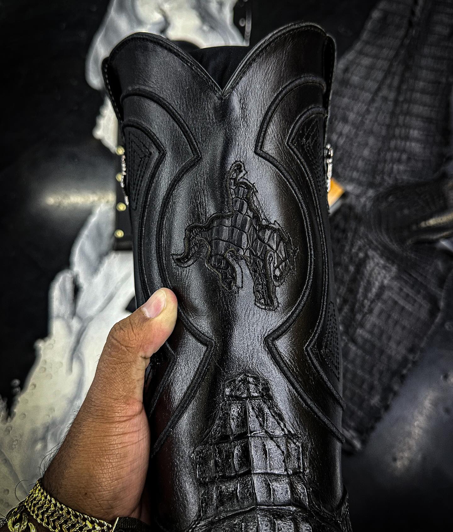 Vintage Totem Crocodile Leather Knight Boots